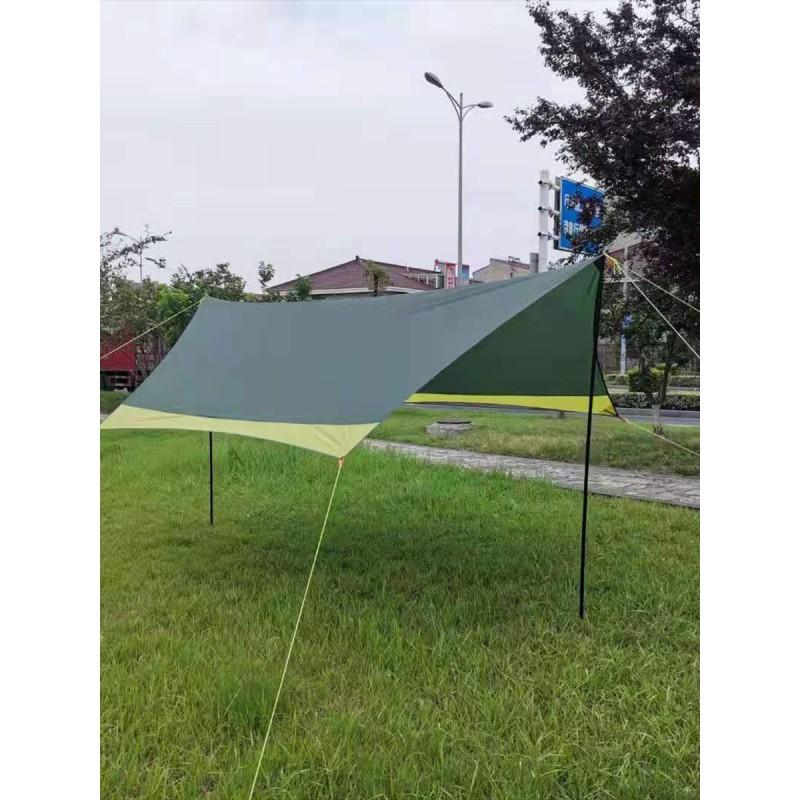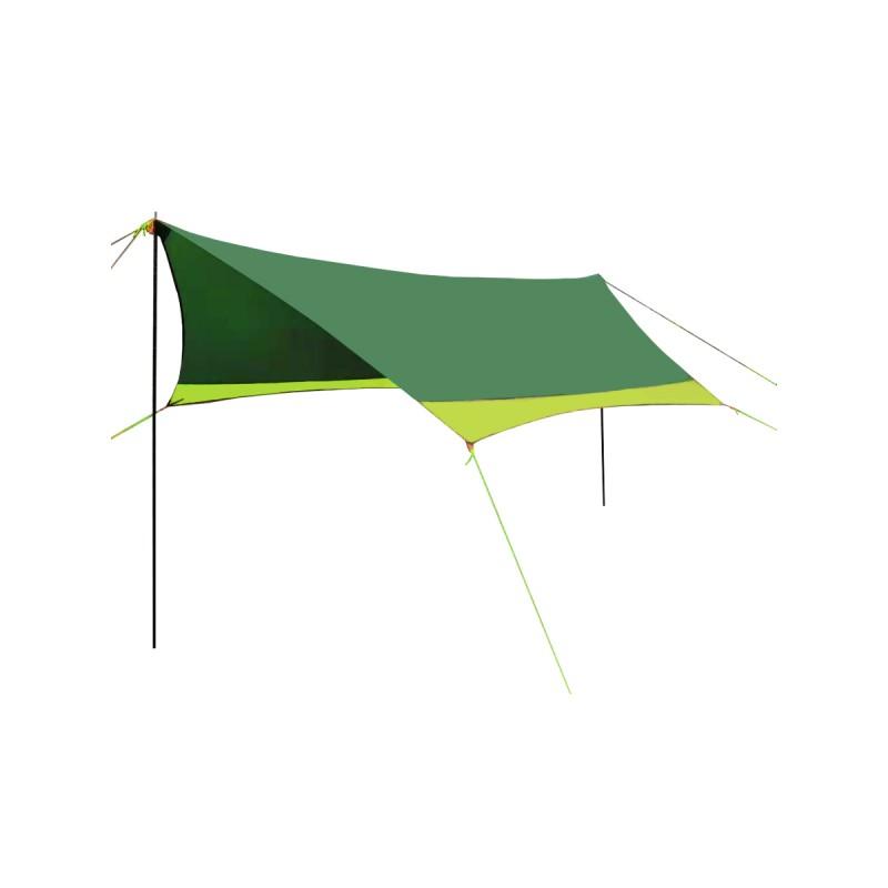 Туристический тент - навес пригодится Вам в походных условиях для организации полевой кухни или обеденного места в непогоду. Наиболее частое применения такие тенты навесы находят на дачных и садовых участках. Навес кемпинговый MirCamping 2010green подходит для интенсивного использования в походах. Он прочный, долговечный, люверсы в плотном материале сидят крепче. Характеристики: материал 420D Оксфорд PU3000, водостойкость 3000 мм.в.ст. Размер 420*350*250 см., колышки железные, вес всего комплекта 3,5 кг.