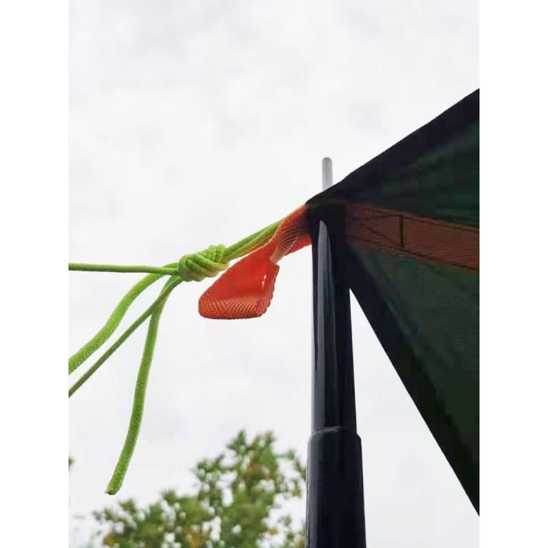 Походный совет: как отремонтировать в походных условиях тент, если из него вырвало оттяжку? Берете маленькую шишку, оборачиваете ее материалом тента и обвязываете шуром. Зачастую такое импровизированное крепление служит потом годами и до нормального ремонта руки так и не доходят.