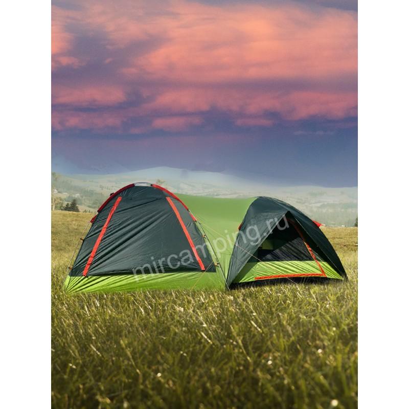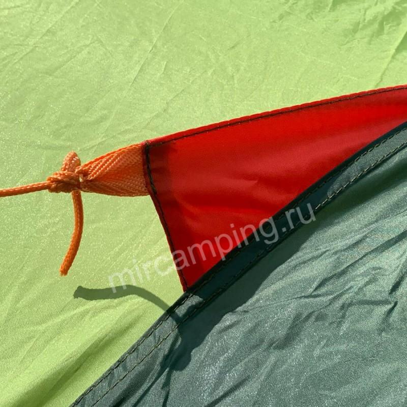Палатка двухслойная, в ней не образуется конденсат. Внешний тент из ткани Polytaffeta 190T 68D PU 3000мм имеет полиуретановую пропитку, которая защищает от промокания (водостойкость 3000 мм вс хорошо выдерживает дождь средней интенсивности). Важным моментом является дополнительная герметизация швов специальной лентой для того, чтобы во время дождя вода не просачивалась внутрь.