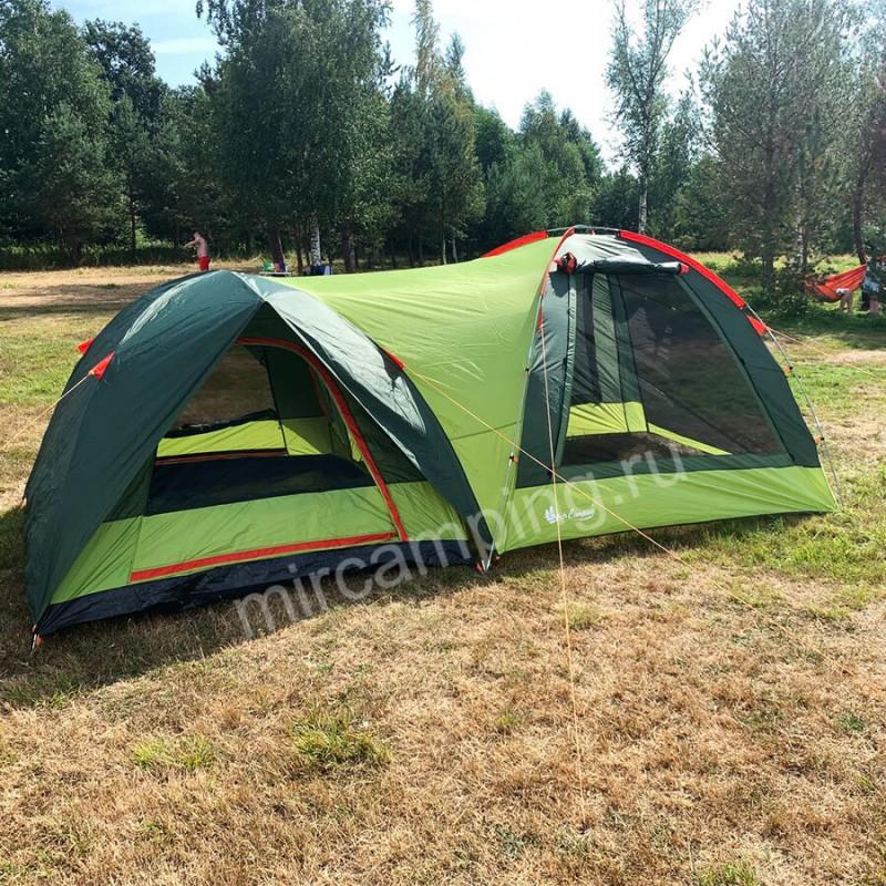 Палатка шатер 2 в 1 Mircamping 1005-4 это 4-х местная кемпинговая палатка с просторным тамбуром для семейного отдыха, туристического выезда на природу, установки в кемпинговом лагере. Ее особенность состоит в том, что данная модель является как шатром, так и палаткой одновременно.