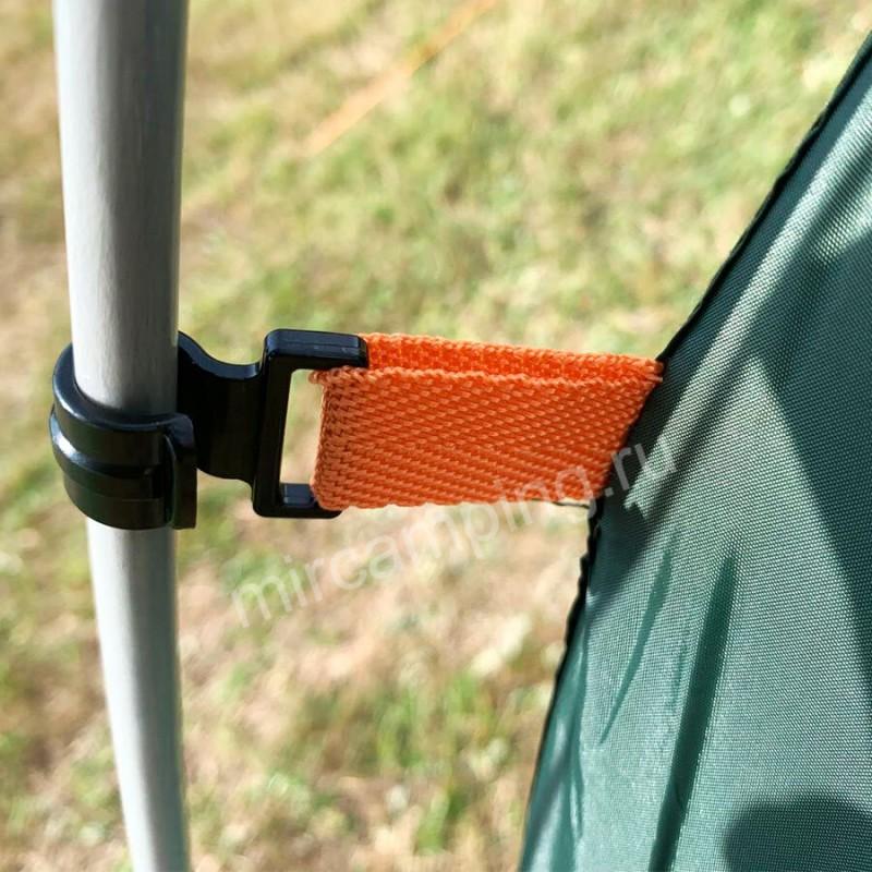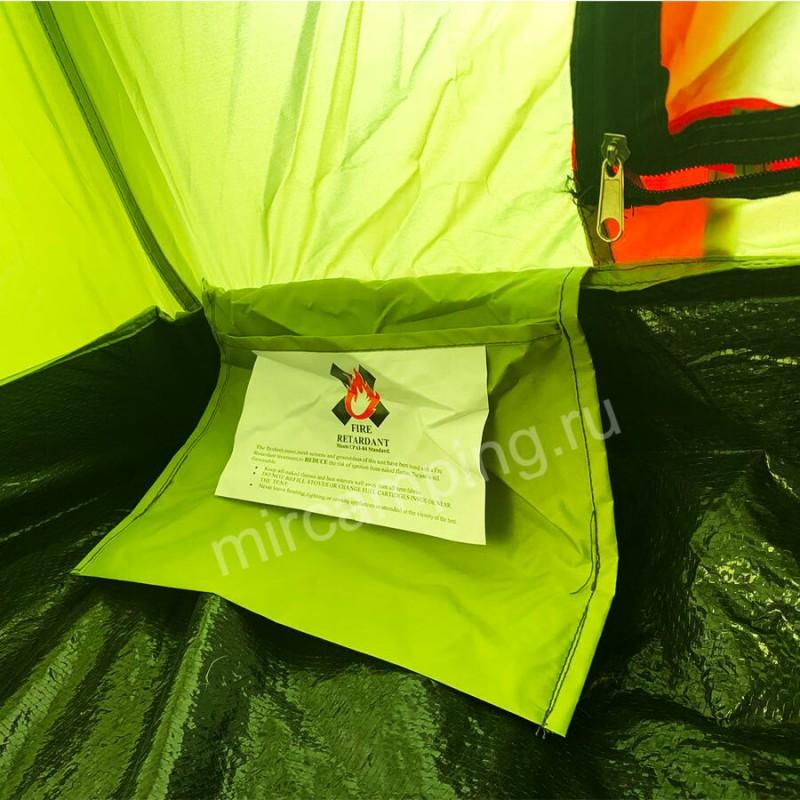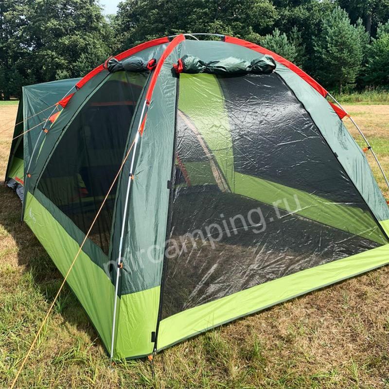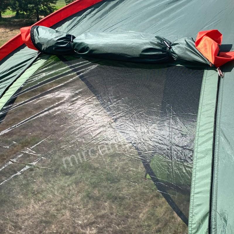Высота тамбура (шатра) 175 см, с двух сторон он имеет большие окна с москитными сетками для проветривания. Палатка имеет 3 входа: 2 в спальное отделение и 1 в тамбур.
