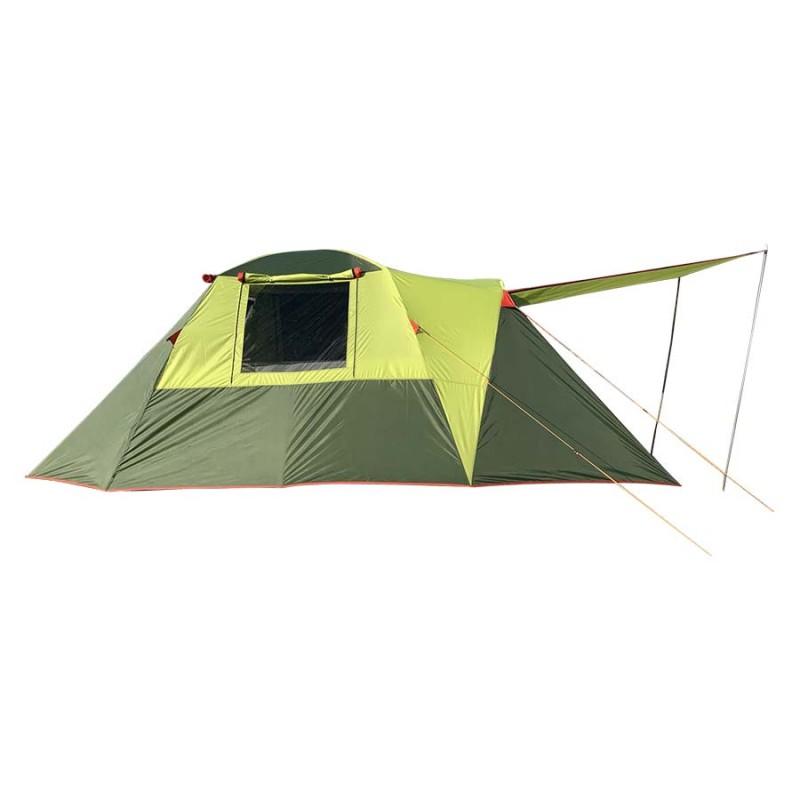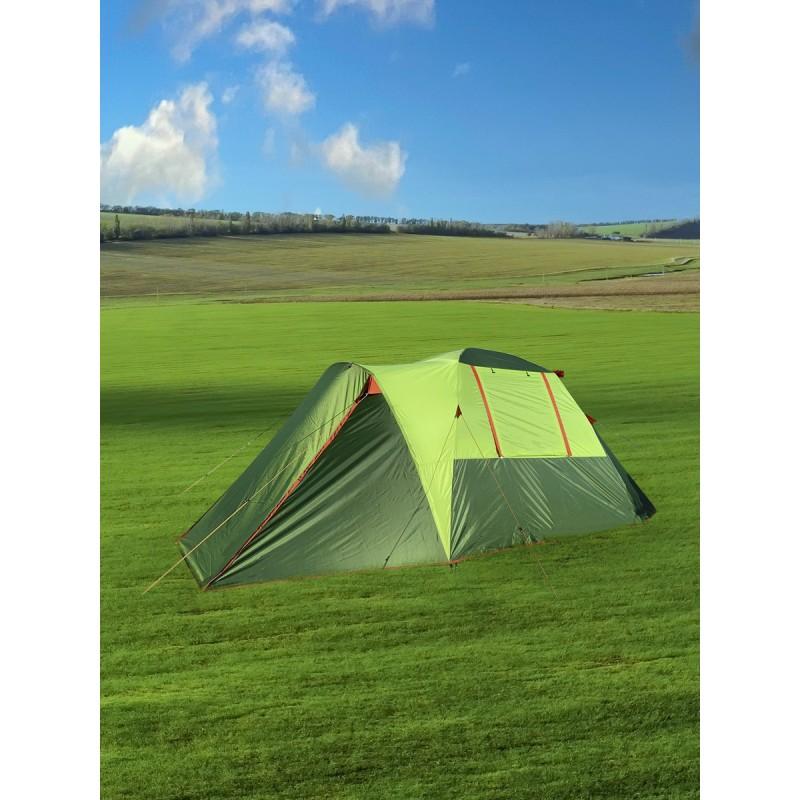 Прекрасная и вместительная кемпинговая палатка для большой компании. С комфортом может разместиться от 4 до 6 человек. Размер палатки 460х220 см., она достаточно просторная, внутри единое пространство без деления на секции. Высота 190 см позволяет стоять в полный рост.