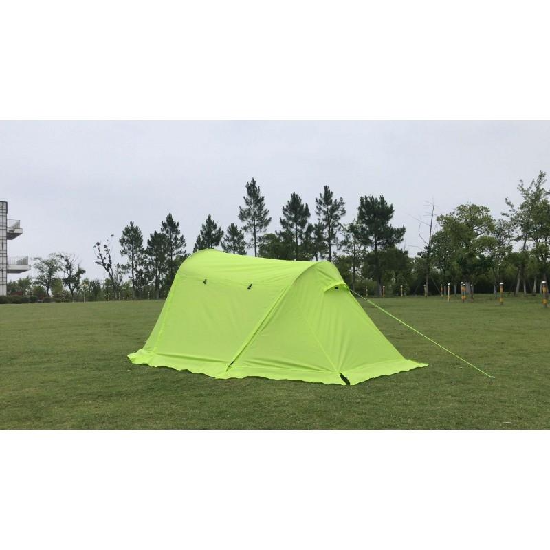 Палатка двухслойная. Внешний слой (тент) - непромокаемый и крепкий, призван защитить от ветра и дождя, а внутренний слой дышащий и очень легкий, на его стенках не образуется конденсат и спать в такой палатке очень комфортно. Внешний материал 210T полиэстер PU 3000мм W/R UV данные характеристики говорят о прочности, надежности, высокой влагостойкости ткани.