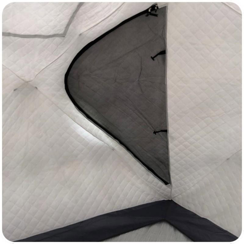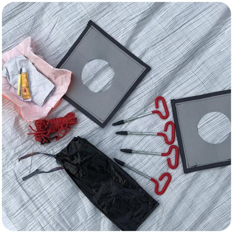 В комплекте: буравчики для крепления ко льду, штормовые оттяжки, ремкомплект и антипригарный коврик под трубу |