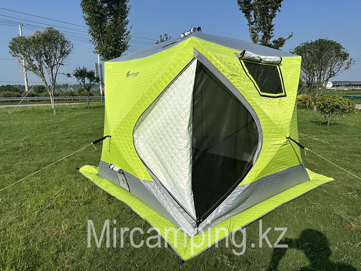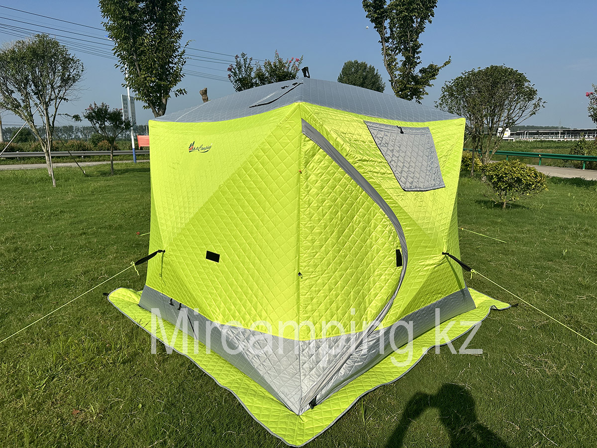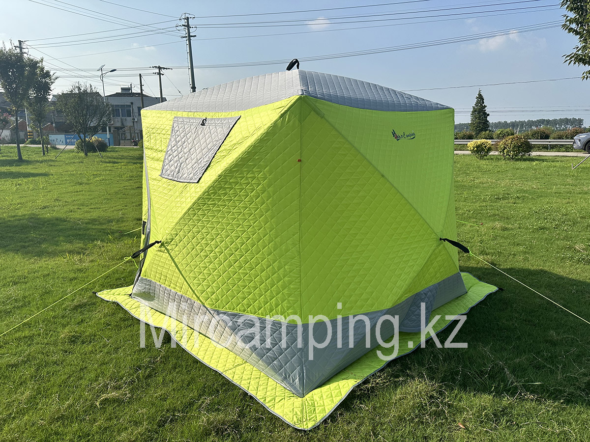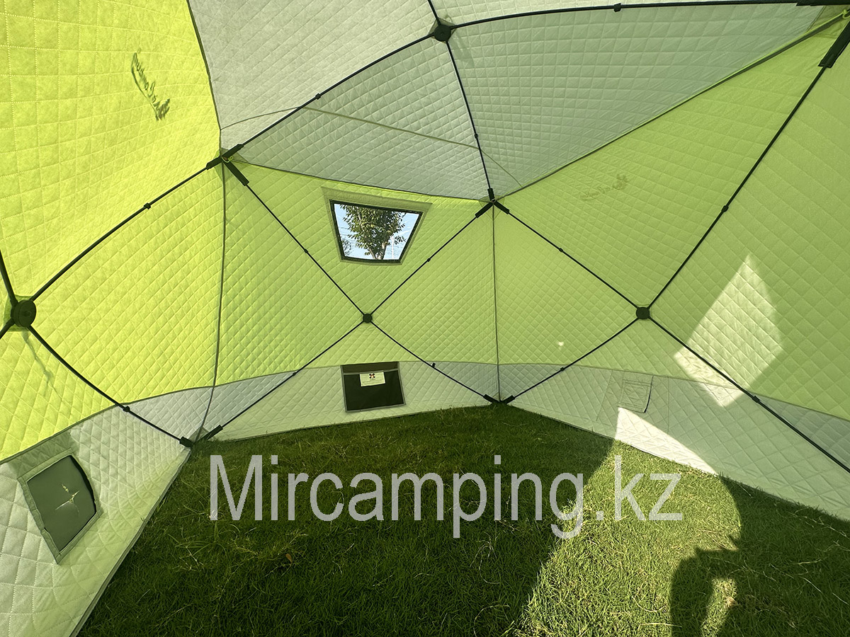 Мобильная баня – идеальный выбор для поклонников зимней рыбалки, которые хотят согреться и расслабиться после удачной ловли. На сборку изделия потребуется несколько минут, просто потяните его за концы. Внутри бани сохраняются комфортные условия даже в минусовую температуру. Конструкция имеет вентиляционные отверстия в стенах и крыше, которые позволяют регулировать температуру и влажность внутри, также предотвращают появление конденсата на стенах и потолке. Вы можете открывать и закрывать клапаны и отверстия в зависимости от вашего предпочтения.