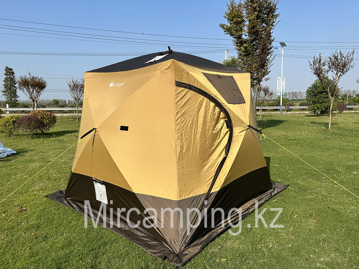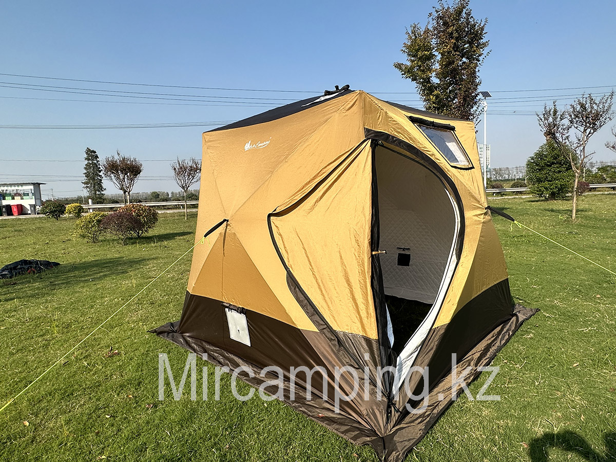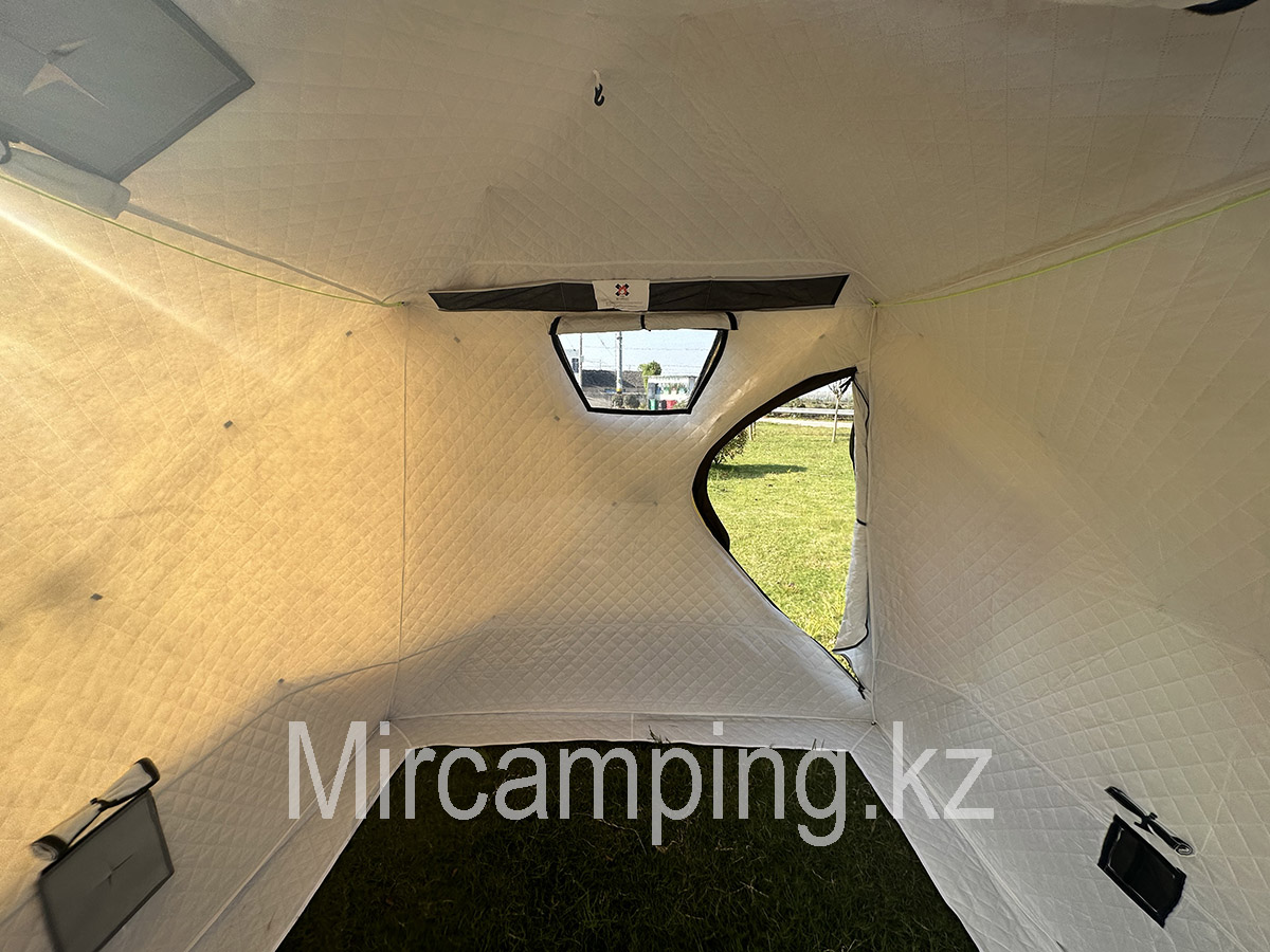 В комплекте: буравчики для крепления ко льду, штормовые оттяжки, ремкомплект и антипригарный коврик под трубу |