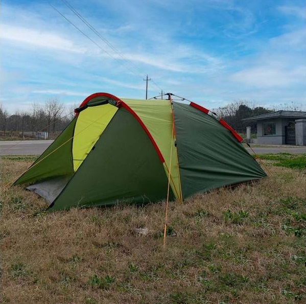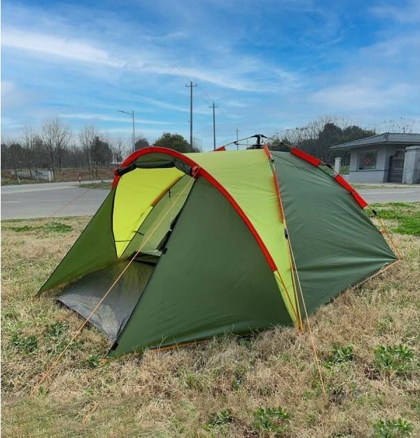 В палатке могут разместиться 3 человека . Тент палатки двухслойный, что позволяет комфортно находиться в ней не в самую лучшую погоду и при этом не мерзнуть.