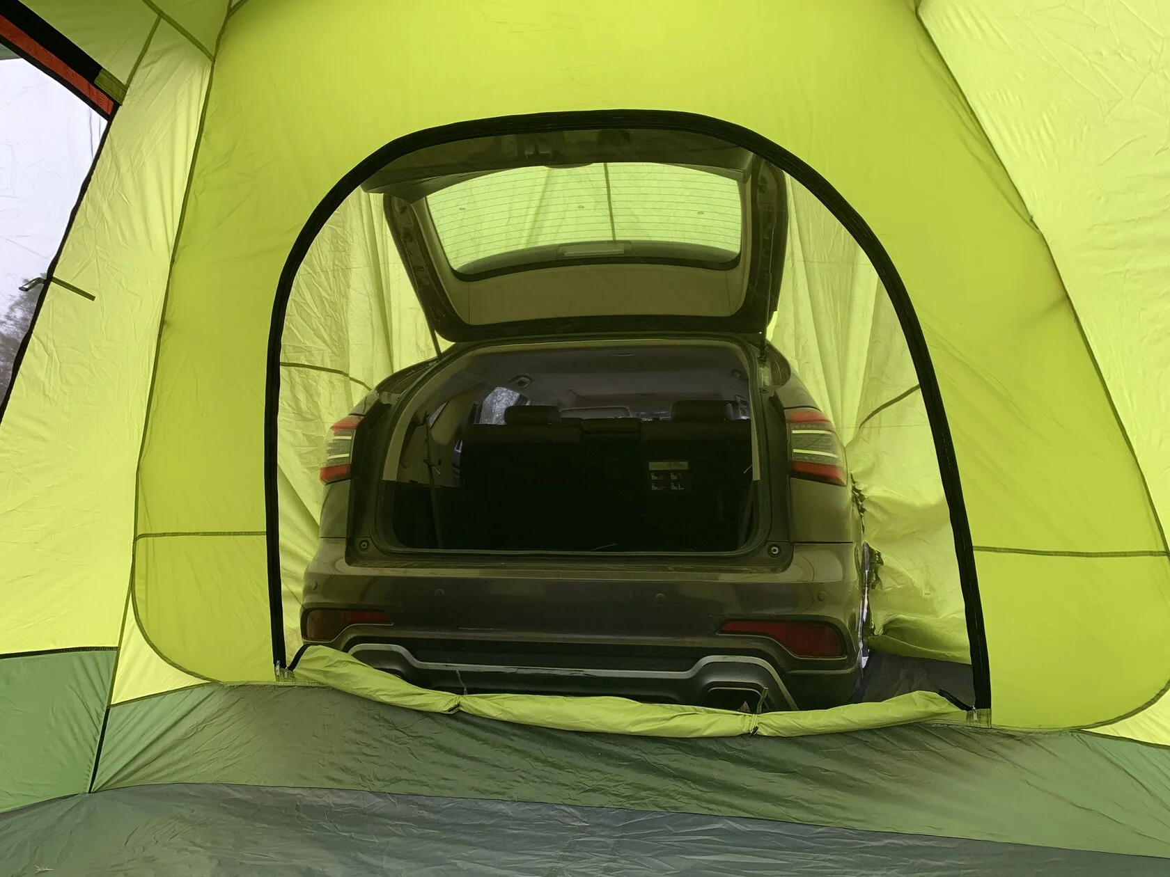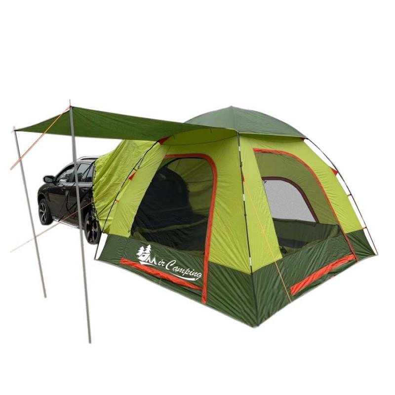 Палатка созданная для любителей путешествий на машине. Эта модель имеет особенную отличительную черту – она имеет специальный туннель для соединения с автомобилем. Ведь часто отдыхая в кемпинге нам приходиться доставать из машины какие то вещи или даже ночевать в транспортном средстве, а тут есть возможность соединить вместе палатку и транспортное средства в единое цельное пространство.