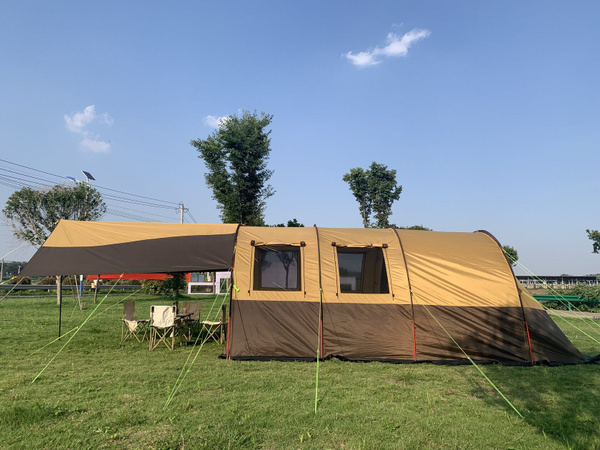 А когда на улице наоборот печет солнце, можно прекрасно расположиться под навесом. При этом навес съемный, палатку можно использовать без него.