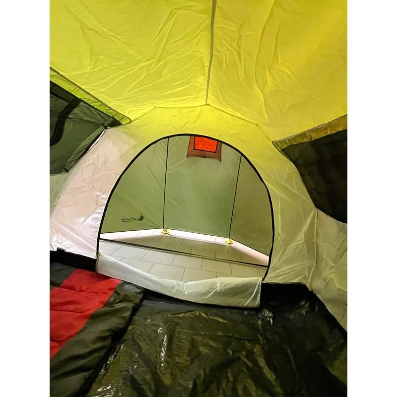 Палатка рассчитана на проживание в ней трех человек, при желании в тамбур может поместиться четвертый. В ней очень удобно перемещаться, так как в высоту она 150 см. В спальной зоне находится три окна с москитными сеточками, которые не пропускают насекомых. Еще есть два кармана для мелких вещей в легкой доступности и крюк для освещения. В зоне тамбура много места, чтобы разместить там все свои вещи или, например, оборудовать кухню.